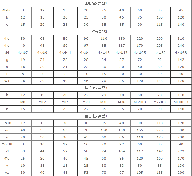 B型結構形式的絲杠頭部分為:1型(圓柱),0型(無接頭)共二種。