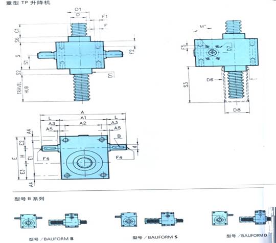 TP螺旋絲桿升降機操作簡單,可靠性強,低維修率等優點,使螺旋千斤頂有著廣闊的應用范圍.TP螺桿升降機有自動連鎖機構,即他們能支撐自身重量而不必采用閘或其它鎖定系統.千斤頂可單獨使用也可與軸、聯軸節,傘齒輪傳動器結合共同使用。他們可由交流或直流電機驅動,也可由液壓或氣壓電機驅動,他們可手動驅動也可用其它傳動形式。驅動軸旋轉帶動蝸輪并產生螺桿的軸向直線運動。螺桿必須有抗旋轉功能;TPR配備旋轉歸納法桿與支撐螺母,驅動軸旋轉帶動蝸輪旋轉。蝸輪與螺桿連接,因而也帶動螺桿旋轉。支撐螺每間把螺桿的旋轉運動轉變成直線運動。支撐螺母必須具有抗旋轉功能。為滿足用戶的廣泛需要,本公司可提供各種螺桿頭,也可按用戶要求定做,TP也可按用戶要求定作千斤頂以滿足用戶特殊機器的特殊要求,產品各大系列均采用雙導軌,確保升機能在最惡劣的條件下發揮最佳工作效能。特殊的密封技術使蝸桿,螺桿升降機蝸輪體系能長期在良好的潤滑狀態下運轉。