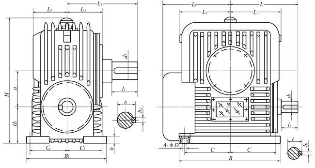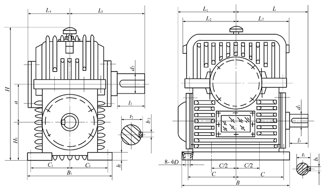 PWU80-PWU355、型平面二次包絡環面蝸桿減速器主要尺寸